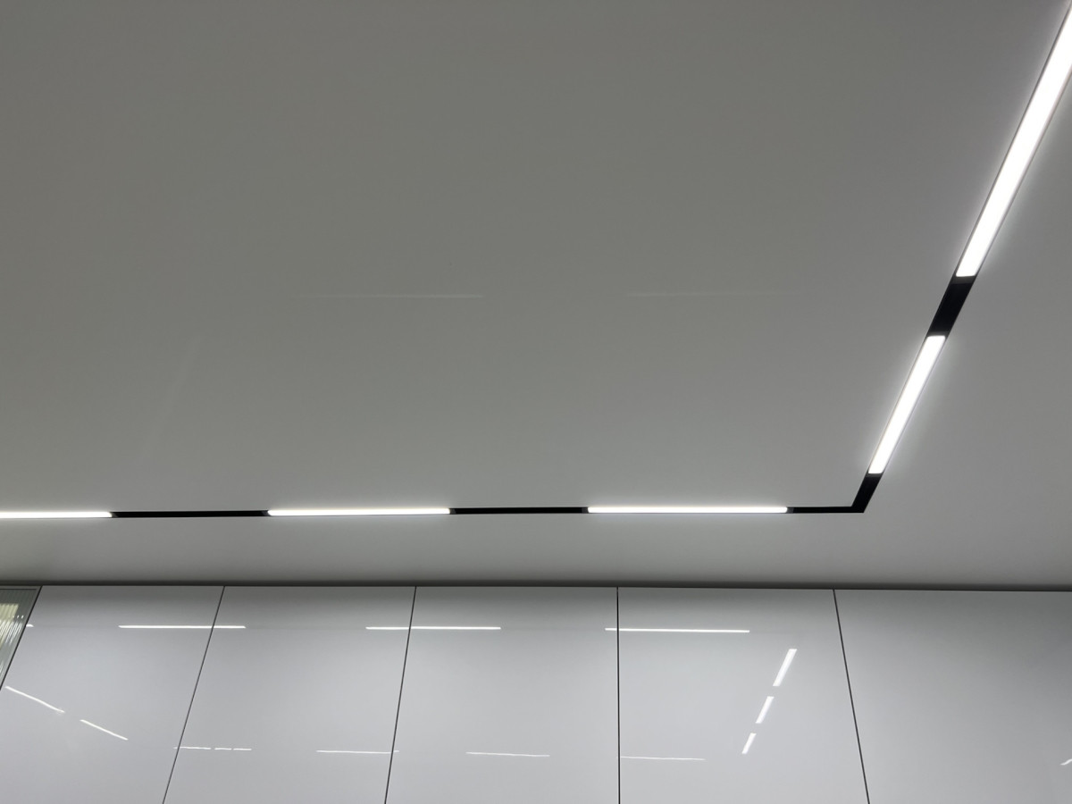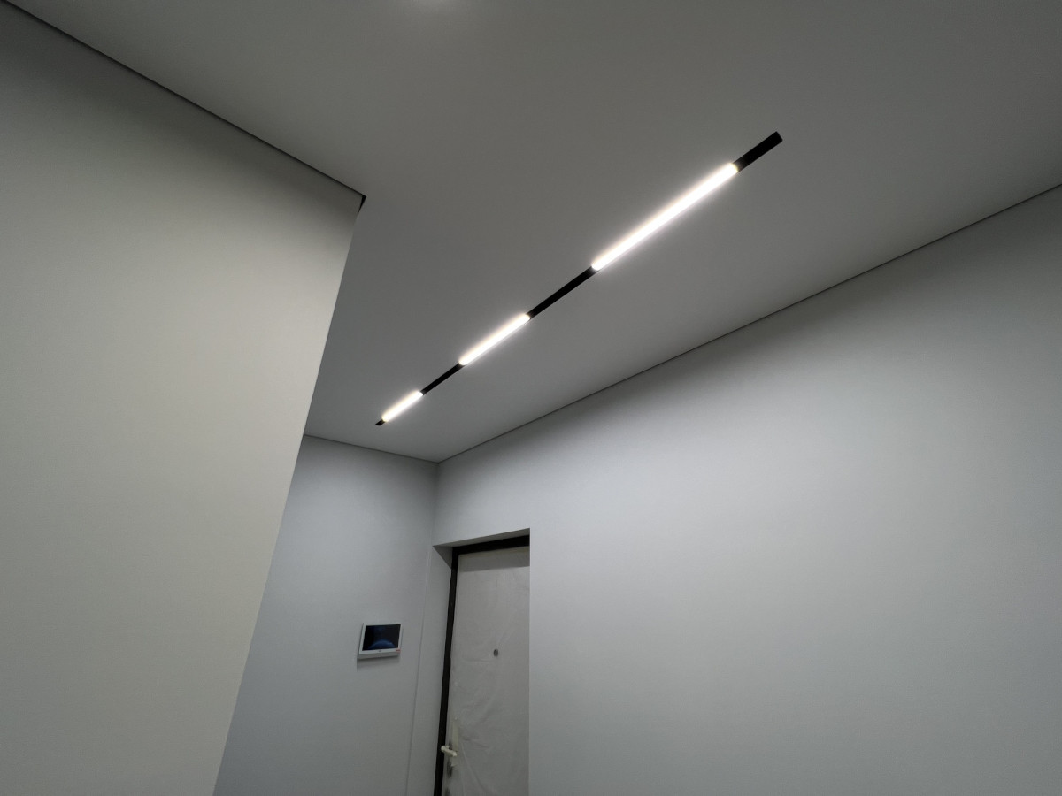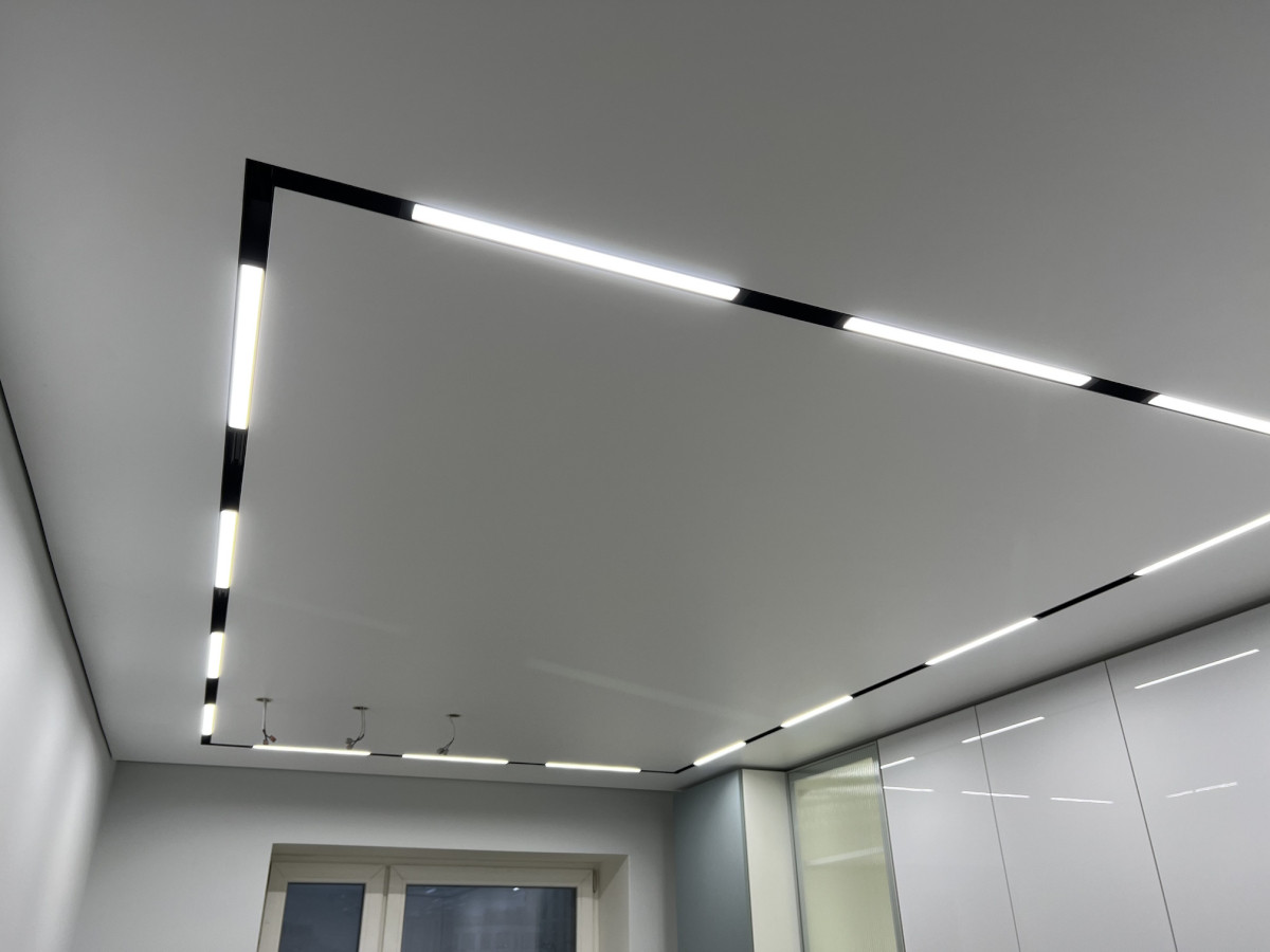 Чаще всего мы предлагаем светодиодную лента и led-профили по периметру помещения, формируя ровный периметр света: такая декоративная подсветка даёт мягкий свет без мерцающая эффекта, экономит электроэнергию и не слепит глаза, а при желании её можно совместить с потолочными лампы и бра.