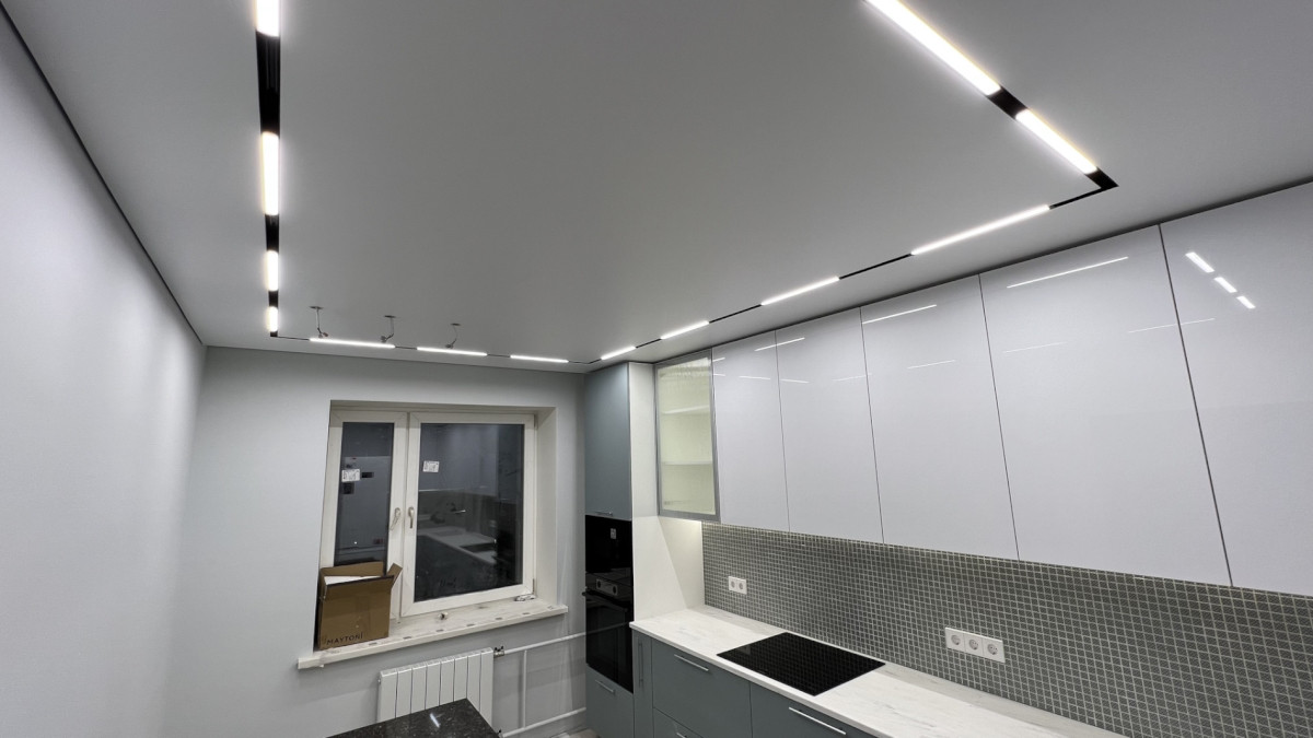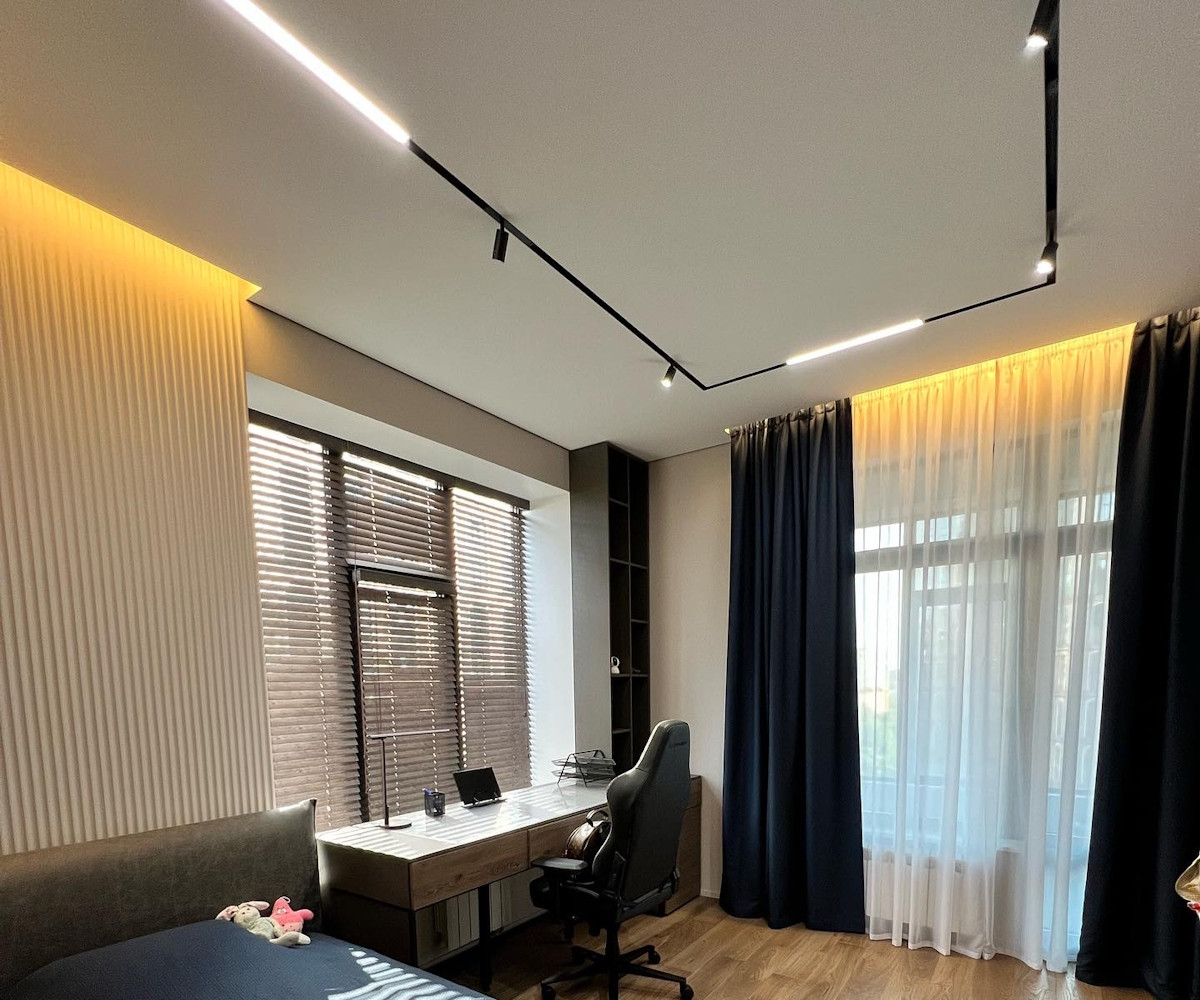 Да, мы проектируем многоуровневые комбинации, где натяжное полотно стыкуется с гипсокартонные коробами из гкл; такая схема позволяет зонировать пространство, играть высоте, делать внутренний световой контур и добиваться ощущения более просторного помещения.