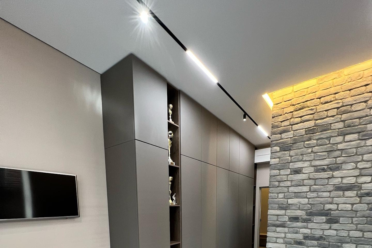 Да, мы проектируем многоуровневые комбинации, где натяжное полотно стыкуется с гипсокартонные коробами из гкл; такая схема позволяет зонировать пространство, играть высоте, делать внутренний световой контур и добиваться ощущения более просторного помещения.